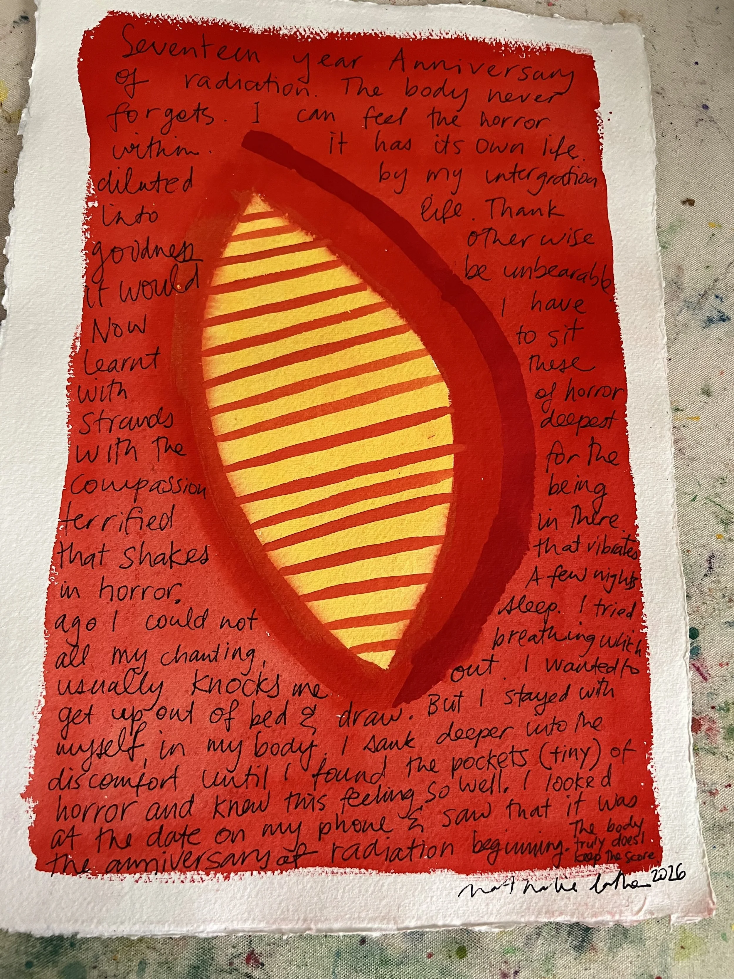 The drawings here were made on the anniversary I completed brachytherapy treatment, seventeen years later. April 1st on a full moon of 2026.