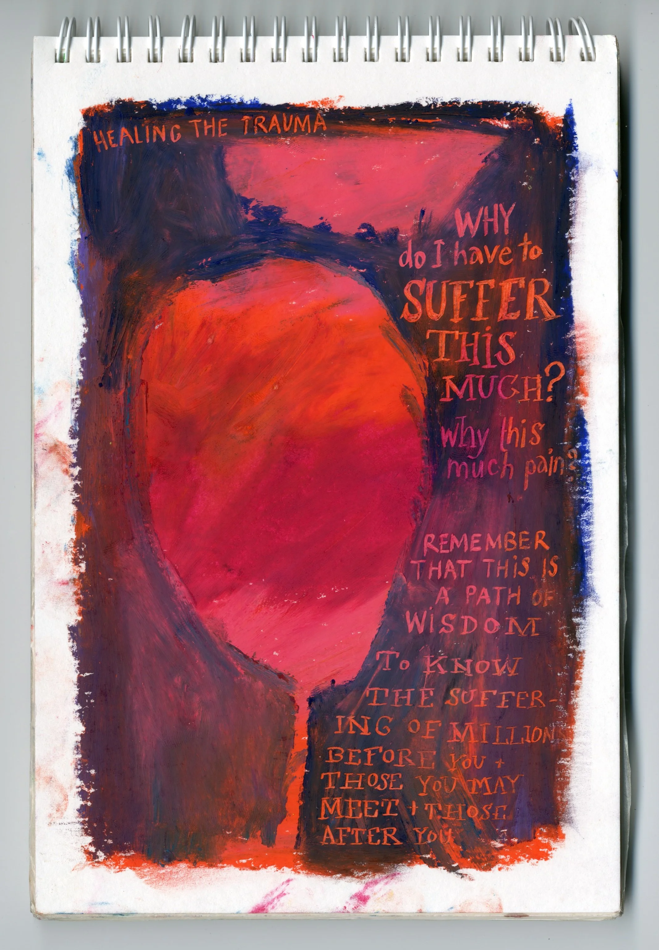 Text: Healing the Trauma. Why do I need to suffer this much? Why this much pain? Remember that this is a path of wisdom. To know the suffering of millions before you and those you may meet and those after you.